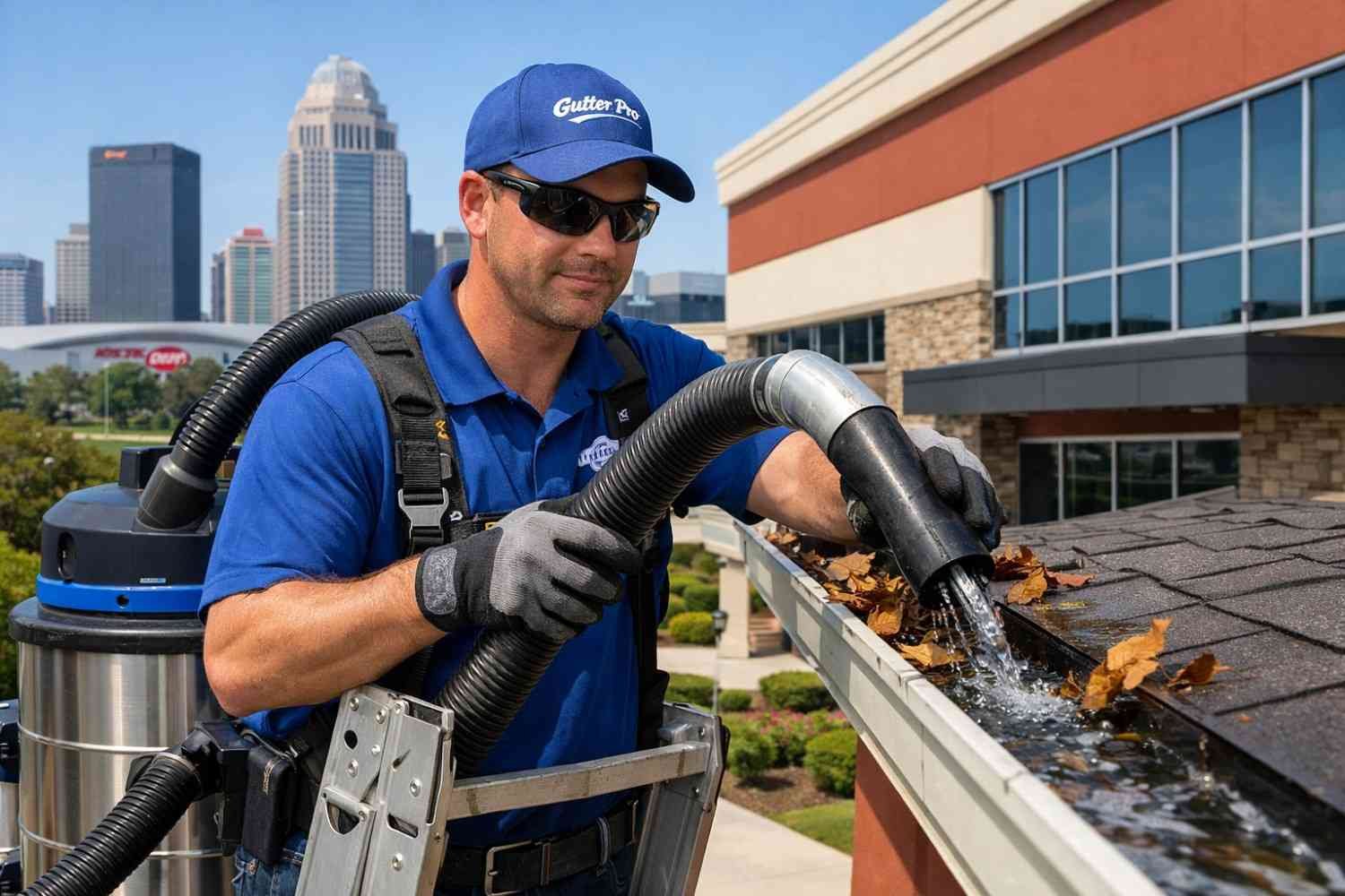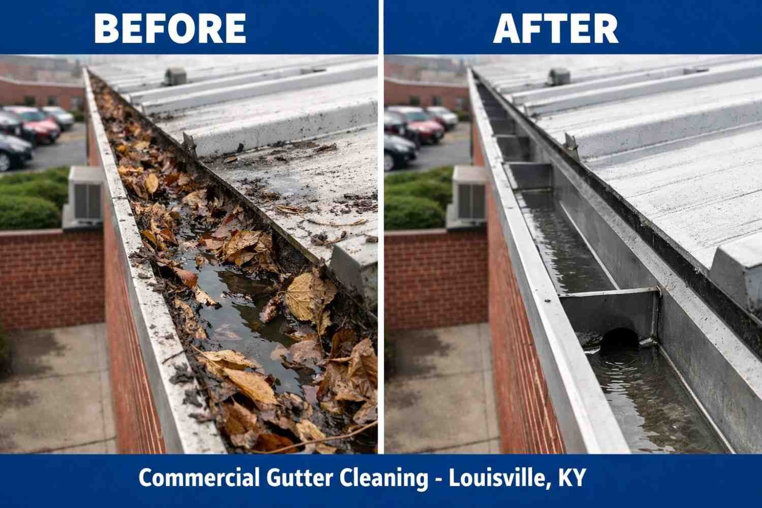 We provide gutter cleaning for commercial properties in Louisville, KY. Our services ensure that your business's gutter system is clear and functioning, preventing water damage and costly repairs.